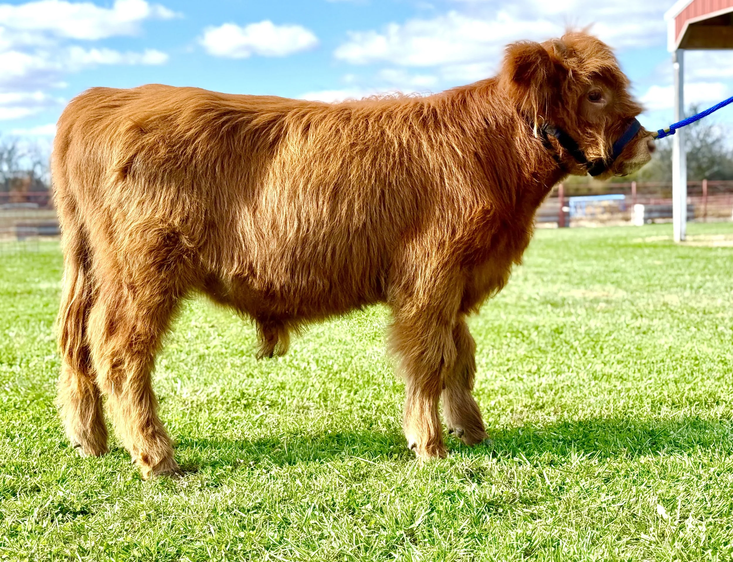 This guy is drop dead perfect. He was born on 3/13/26 and his markings are incredible. He’s the biggest labrador in your pocket sweet, gentle soul. He is an approx. 80% highland high park bull calf that could also be steered. He is bred with some pretty cool genetics and the 80% highland increases the hair in his lineage while still giving the perfect marketings!